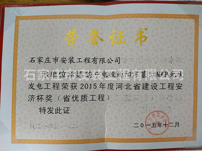 2015年度河北省建設工程安濟杯獎(省優(yōu)質工程)