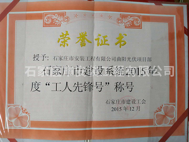 石家莊市建設(shè)系統(tǒng)2015年度“工人先鋒號”稱號